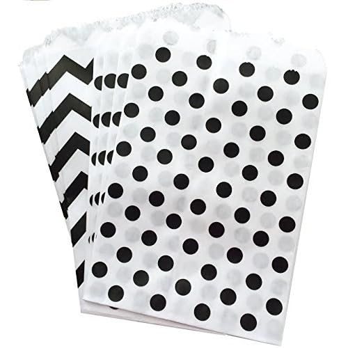 Outside the Box Papers Polka Dot and Chevron Treat Sacks 5.5 x 7.5 48 Pack Black, White is best for youSold in packages of 48, the medium sized sweet sacks are perfect for weddings, showers, homemade food gifts, candy buffets, or any other special occasion. They are also great for organizing paper and ribbons or filling with favors for a party. These flat pinched bottom bags are made of white Kraft paper, food safe, semi opaque, biodegradable, and recyclable. Measurements are 5.5 x 7.5.