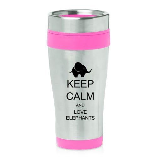 Pink 16oz Insulated Stainless Steel Travel Mug Z406 Keep Calm and Love Elephants is best for youPink 16oz Insulated Stainless Steel Travel Mug Z406 Keep Calm and Love Elephants
