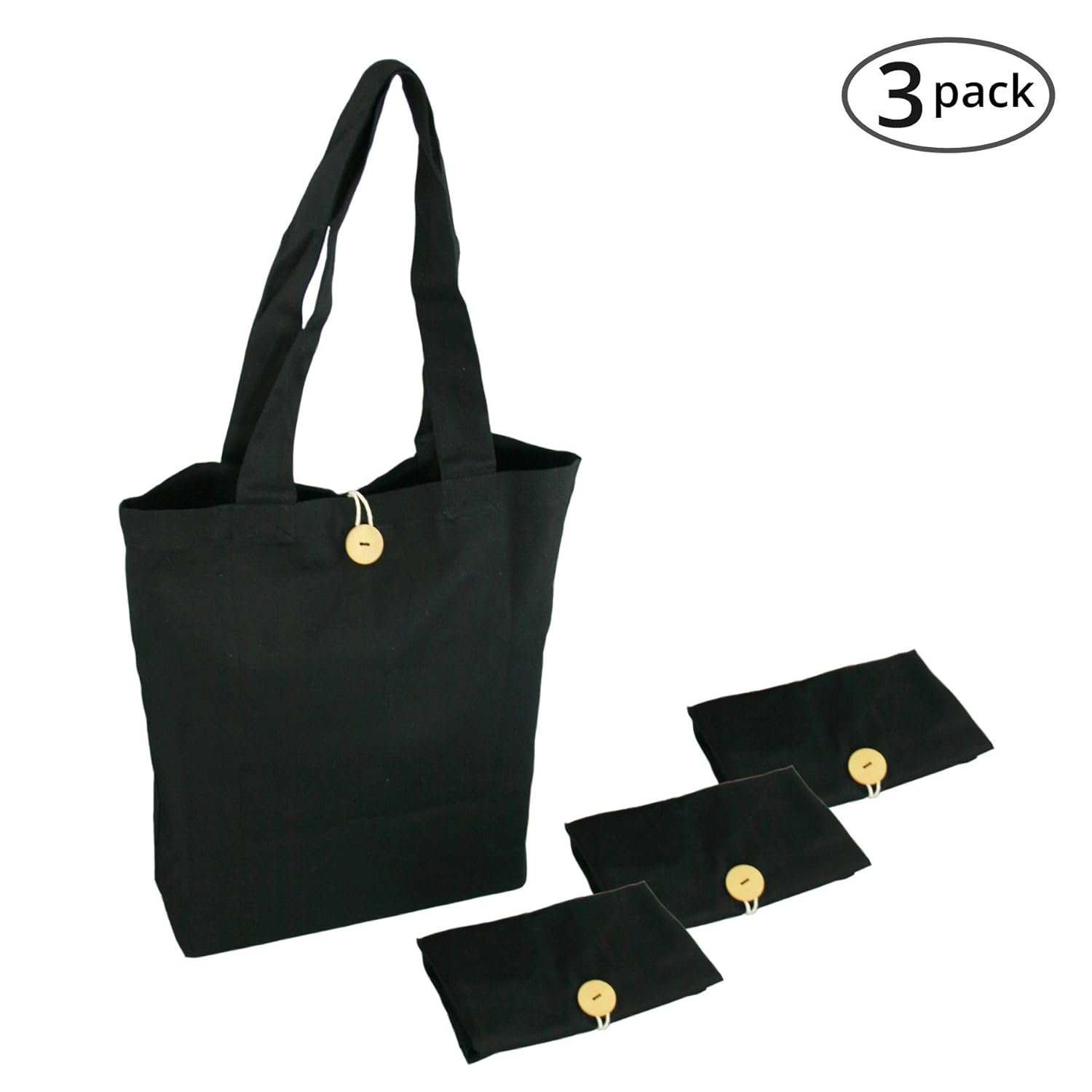 Simple Ecology Organic Cotton Folding Tote with Closure - Black (3 Pack) best Food Storage