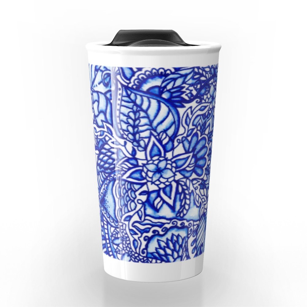 Society6 Modern Blue Handdrawn Watercolor Floral Mandala Travel Mug 12 oz is best for youSize:12 oz Society6 Modern Blue Handdrawn Watercolor Floral Mandala Travel Mug 12 oz by Girly Trend. Take your coffee to go with a personalized ceramic travel mug.Double-walled with a press-in suction lid, the two-piece (12oz) design ensures long lasting temperatures while minimizing the risk of spillage from kitchen to car to office. Standing at just over 6' tall with wrap around artwork, safely sip hot or cold beverages from this one of a kind mug.