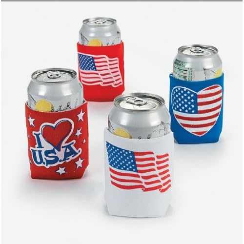 American Flag Patriotic Bottle/Can Covers is best for youThese foam can covers are perfect for holding your favorite beverage on the Fourth of July! An American flag or patriotic design decorates each of them. Put a 12-oz. can inside and show your patriotism year-round! 4 3/4 diameter.