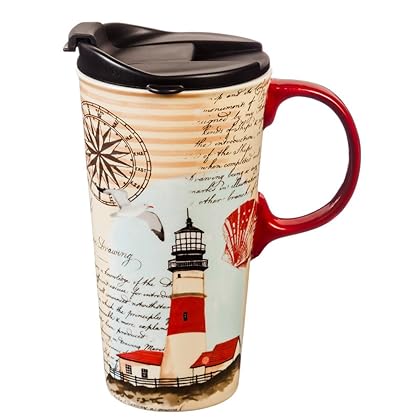 Cypress Home Northeast Lighthouse Ceramic Travel Coffee Mug, 17 ounces is best for youBehold! You will never need to find another vessel to carry your coffee to work in the morning, the park in the afternoon or to soccer practices on the weekends- You have found The Perfect Cup. The durable ceramic construction is paired with appealing sleek lines and an artful design. Partnering with a high-end industrial design firm, this unique lid was developed. Designed specifically for The Perfect Cup, the “perfect” lid features three rings of silicone to ensure no leaks. The doubled lip plastic ensures a tight fit at the top and fits 1.5 inches into the cup’s molded grooves for true security. The pop-top attachment provides security, insulation and a comfortable place to sip your coffee. Holding up to 17 ounces, The Perfect Cup is top-rack dishwasher safe. This Perfect Cup is not recommended for microwave use due to the metallic accents in the pattern. It comes packaged in a coordinating gift box, making The Perfect Cup a great gift-giving idea as well!
