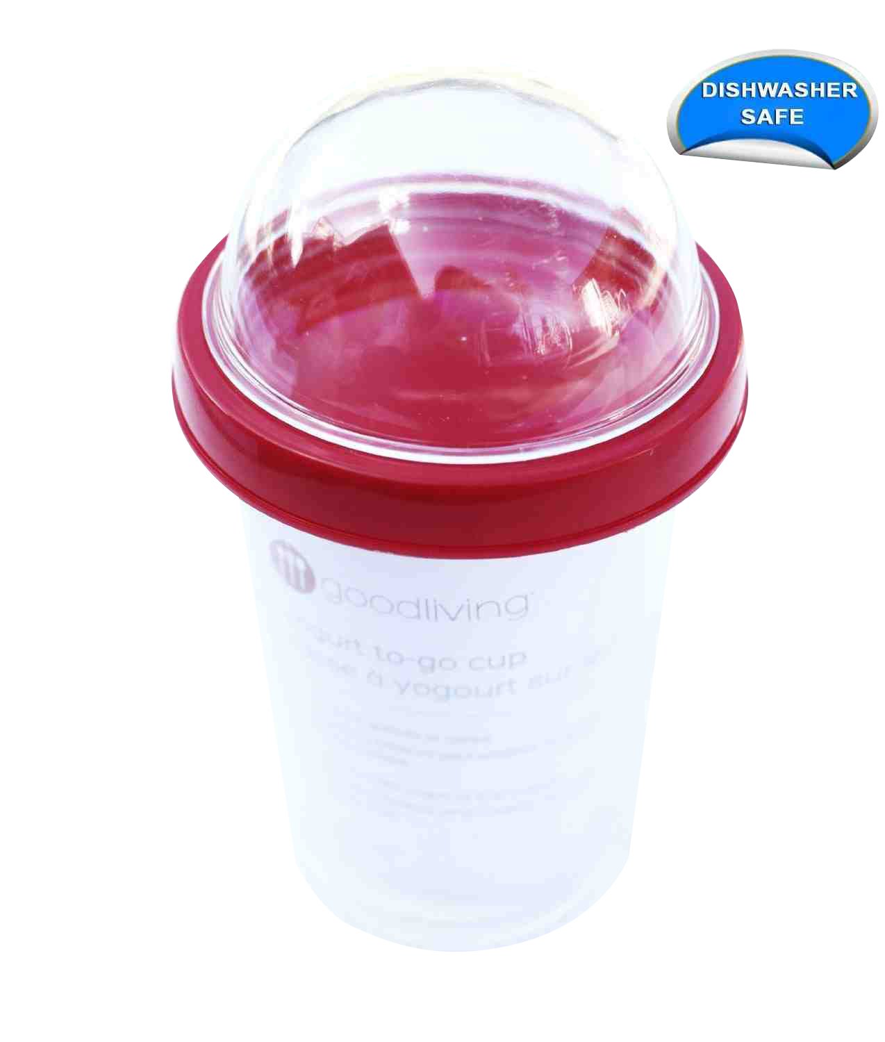 Good Living Compact and Portable Yogurt and Cereal To-Go Cup, Red, 1-pack is best for youSize:1-Pack | Color:Red Have you ever ruined an office bag or lunch bag with spilled yogurt or milk? Most of us can barely manage to grab breakfast. We go ahead and carry it in flimsy containers to dig in while we are on our way. This leads to the risk spilling all over yourself. Well, not anymore! A fine combination of functionality and eye-appeal, this well-designed container has an upper compartment to store your favorite cereal, nuts or granola, and a lower compartment to efficiently store yogurt, fruits or salad. The food-grade plastic, air-tight and leak-proof mechanism keeps your food wonderfully fresh. You can carry it easily and use it for any purpose, from school or office lunch, to trips, picnics and more. Dishwasher and refrigerator safe. It is reusable and ideal for easy grab food or meals. Even more, there are three brilliant colors to choose from- blue, red and purple. Pick one and place an order right away!