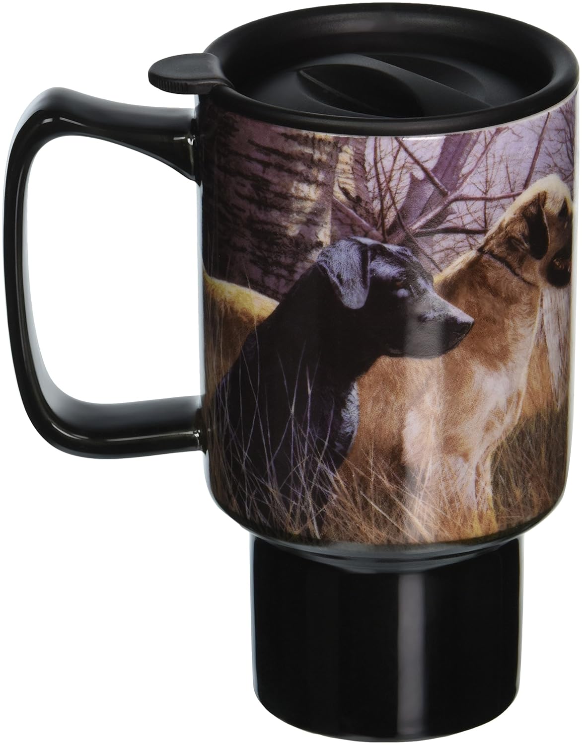 Lang 2127001 Autumn Labs Travel Mug is best for youThis unique lidded travel mug is the perfect size to take on your journey. The lower section of the mug is a 2 1/2' diameter to fit most of today's cup holders. The body of the mug is wrapped in full-color Lang artwork from a selection of your favorite artists.