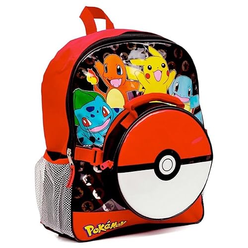 Pokemon Large Backpack and Pokeball Insulated Lunchbox Lunch Bag (Colors may vary) is best for youPikachu, Charmander and Pokémon characters go back to school with this backpack and insulated lunch tote bag set. Bright red, yellow, orange, black and white color design with pokeball lunch bag. Large zip up compartment for books, laptop, travel items and supplies. The insulated lunch bag is detachable. For boys and girls back to school, pens, pencils, supplies and accessories. Character art from the popular Pokémon go game and toys. Ages 6 and up.