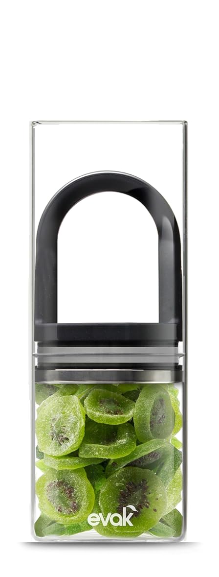 Best PREMIUM Airtight Storage Container for Coffee Beans, Tea and Dry Goods - EVAK - Innovation that Works by Prepara, Glass and Stainless, Black Gloss Handle, Large is best for youColor:Black Gloss Handle | Size:Large Air takes out the freshness, EVAK takes out the air! The longer your food is exposed to air, the faster it loses flavor. Glass containers with air-tight lids are readily available, but they trap stale air in with your precious food. Evacuate the air and keep your food fresher and longer with EVAK glass storage containers by Prepara. Scientifically tested. Our Evak container was tested against the leading brand of storage container and there was no comparison. The Evak locked in flavors for longer and kept contents fresher. Still not convinced?...try one- we have a 5 year guarantee for satisfaction and quality. We are sure you'll love it. It's so simple- just push down, then pull up; no buttons or levers. Perfect for coffee, tea, cereal, dried fruits, granola, herbs, spices, confections, etc. The twin valve system automatically forces the air out as you push down the lid, and allows you to easily pull up and remove the lid to access contents. Designed in the USA by a very prolific team, famous for many household 'must-have' tools and gadgets EVAK Was funded on Kickstarter in just 2 days. Evak has since gone on to win numerous awards and accolades for its functionality and beauty. You can see Evaks in use at some very discerning restaurants and coffee roasters, including Michelin starred restaurant Daniel and at La Columbe coffee roasters…why not on your counter too! Awarded the number 1 choice 'best storage containers to keep food fresh' by both Good Housekeeping and Progressive Grocer. ***NOTE: Need the perfect measuring spoon to complement your Evak? we sell that too. Available in two sizes, beautifully made in stainless steel. Designed to hang tidily and always to hand on the rim of the container. Just paste this into the search bar: B00UMXUNSO