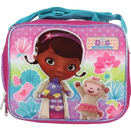 Disney Doc McStuffins soft lunch box is best for youLunch Bag. Size (Approx.) ~9' x 8' x 4'. Zipper Closure. Carry Handle. Adjustable Shoulder Strap. Licensed Products.