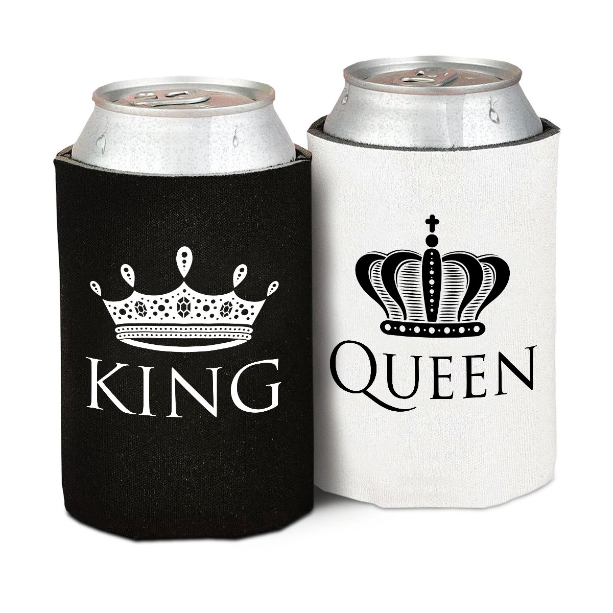 King and Queen Wedding, Anniversary, Newlywed, Foam Can Cooler Set - Set of 2 is best for youKing & Queen can coolers for your favorite couples. Perfect addition to a gift basket or gag / novelty gift.