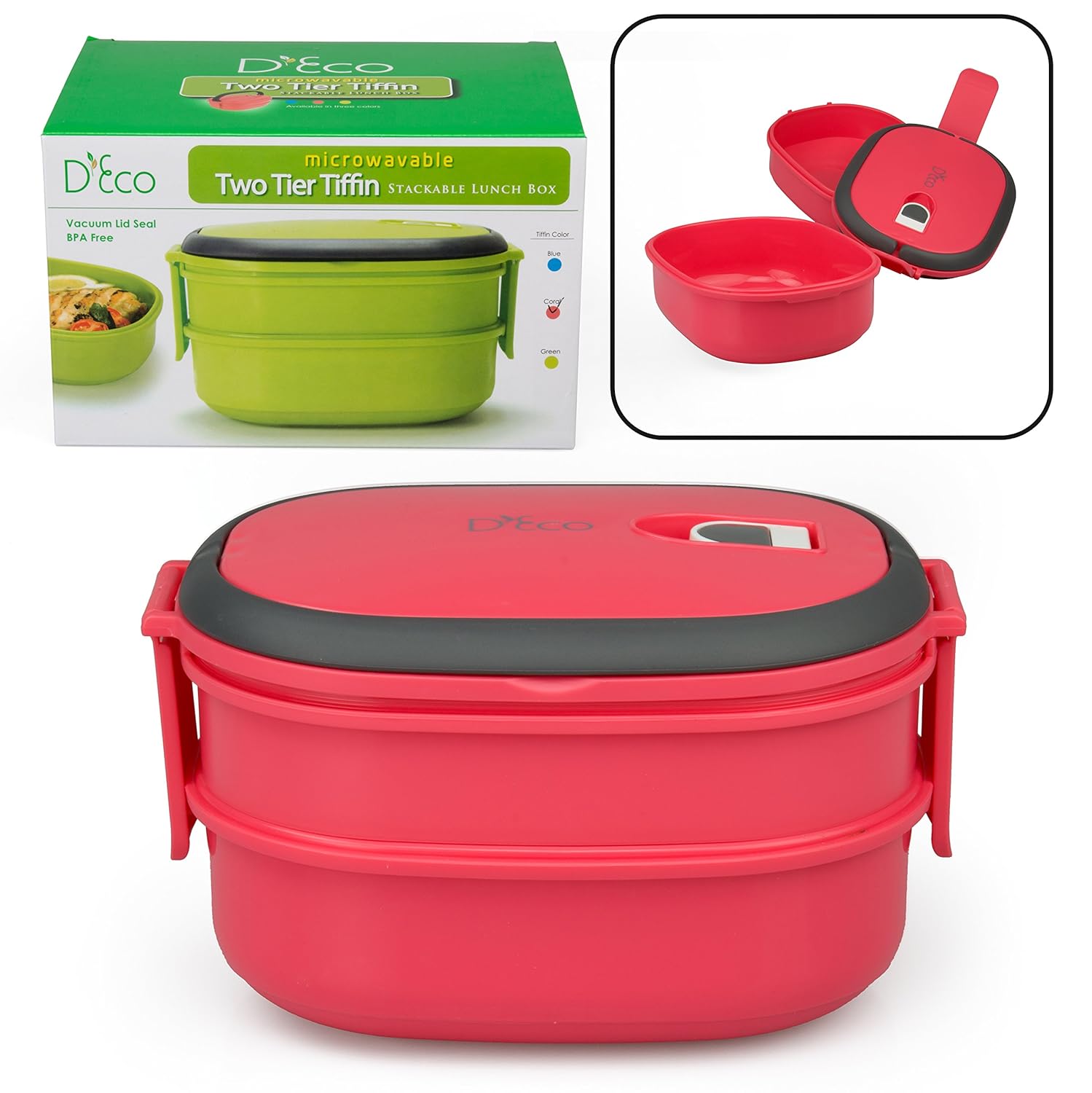 Microwavable Lunch Box- Stacking Two Tier Tiffin with Vacuum Seal Lid (Coral) is best for youStacking Two Tier TiffinMicrowavable Lunch Box- Stacking Two Tier Tiffin with Vacuum Seal Lid: Our microwave safe lunchbox is made of durable BPA free plastic. Two layer design allows you to separate your food. The top tier features a vacuum seal to prevent spills and keep your food fresh. Holds 6 cups. Arched handle provides convenient carrying and locks snap securely to fasten both compartments together.Product Features Perfect for microwave use BPA free Two layer design allows you to separate your food Locks securely fasten both compartments together Dishwasher and freezer safe