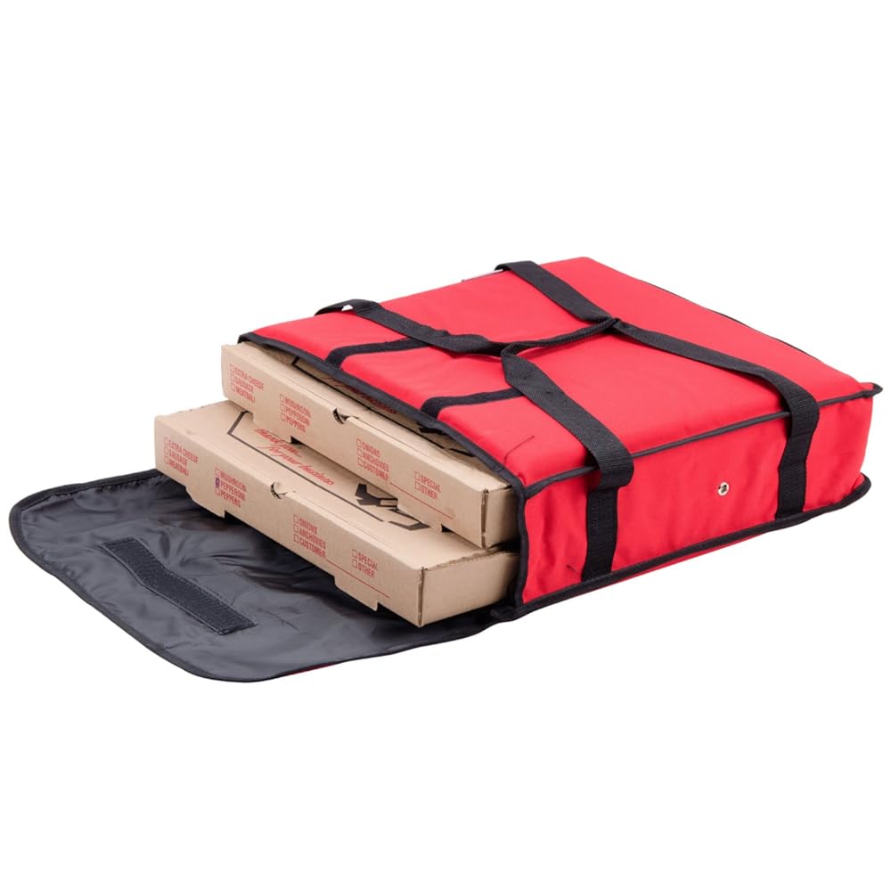 Nylon Insulated Pizza Delivery Bag Size 18" x 18" x 5" is best for youRed Nylon Insulated Pizza Delivery Bag makes the wonderful adding to any company who deliver pizza around their locations. Red pizza bag design looking elegant and easy to carry it’s finished with strong nylon and with has strong features with plus points, bag has a front loading pizza intend that makes it easy to insert pizza orders for quick and, professional service. Deep strip just about the external area to avoid rips or tears at the seams