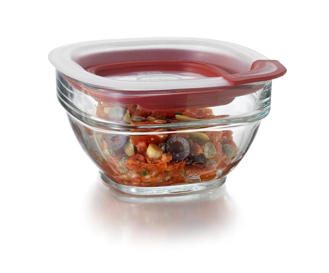 Rubbermaid 1 Cup Glass Storage Containers With Easy Find Lids - Set of 4 is best for youSize:1 Cup The set includes: Set of 4 1-cup Easy Find Lid Storage Containers Manufacturer Item number 1787531. The easy-find lid of this sleek, crystal clear tempered glass food storage container snaps to the bottom of the container to make sure the lid never gets lost. Added to a collection of other Rubbermaid easy-find lid glass food storage containers and the bases and lids will neatly nest inside each other for compact organization in your cabinets. A built-in gasket creates a leak proof seal to keep out air and help keep foods fresh. This BPA-free glass container is dishwasher, freezer, microwave, and oven-safe to 425°F.