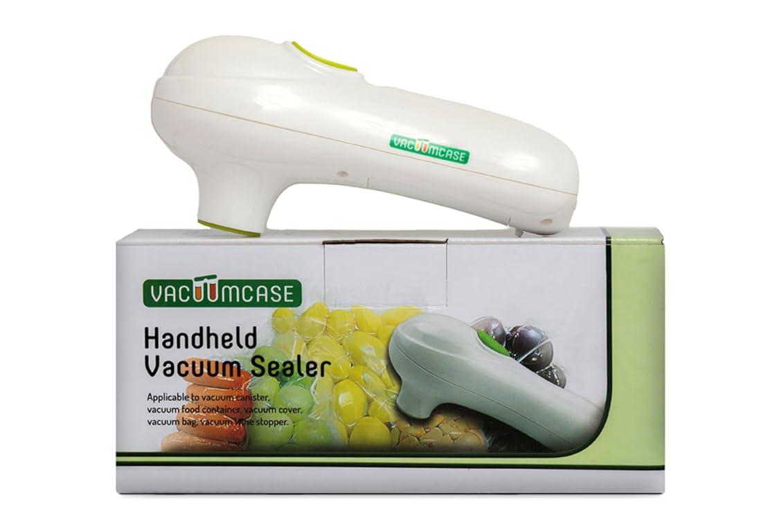 Vacuum sealer by Vacuumcase, Handled Vacuum Sealer, Seal And Store Food Or Waterproof Your Documents Fast And Easy, With 5 Free Reusable Zipper Lock Bags is best for youKeep Your Food Fresher For Longer!If you’re tired of throwing away food that has gone bad only after a few days in the fridge, then our vacuum sealing system is exactly what you’ve been searching for.Lightweight and able to fit in the palm of your hand, it’s strong when it comes to protecting your food from spoiling. Place in a zipper lock bag any food you’d like, from cheeses and meat, to any kind of vegetable, cereal, or any foods that have a short shelf life, and our vacuum sealer will simply remove all the air, keeping your food safe and fresh until you use it! It’s safe for sous vide cooking, so don’t be afraid to store partially cooked fish, meat or vegetables inside the bags, as the vacuum has a pressure of 0.75 bar maximum.Multiple UsesOur vacuum’s usage doesn’t just stop at food. You can use it to pack your summer or winter clothes into zipper lock bags and save space in your closet! If you have important documents that you need to keep safe, place them in a bag and by removing the air you can keep them secure and waterproof.Includes Free Zipper Lock Bags And A ChargerA charger is included in our package, so you can reuse our vacuum sealing system as many times as you like! It’s multi-purposed, as both the power source and the batteries (4 x AA 1.5V) can be used as power. It’s operated by the adaptor or a DC 1000-1200MA one.The 5 free zipper bags are also included, so you can start storing immediately! They are easy to clean and they will save you money in the long run.Stop Foods From Spoiling With Our Vacuum Sealing System! Save Money When You Shop For Groceries And Don’t Throw Away Anything Ever Again! Get It Now While Stocks Still Last!