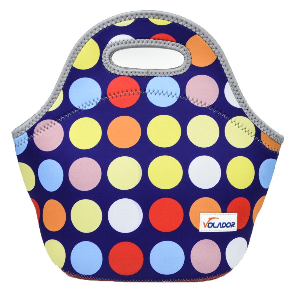 VOLADOR Neoprene Lunch Bag Waterproof Personalized Insulated Lunch Tote Bags Picnic Lunch Food Handbag is best for youVolador Neoprene Insulated Lunch Bag Features: Volador cute dots lunch bag machine washable and stain resistant Made of fine soft and light Neoprene material, it is convenient to carry and storage Insulated and waterproof material makes your lunch tote safe Sweet and fashionable design lunch bag can be perfect gifts for your friends Excellent Neoprene material have insulativity and waterproofness , can provide better protection for your food. Specification: Brand: Volador Material: Neoprene Style: Portable lunch bag Dimension:30x25x15CM Package Includes: 1 x Volador Lunch Bags