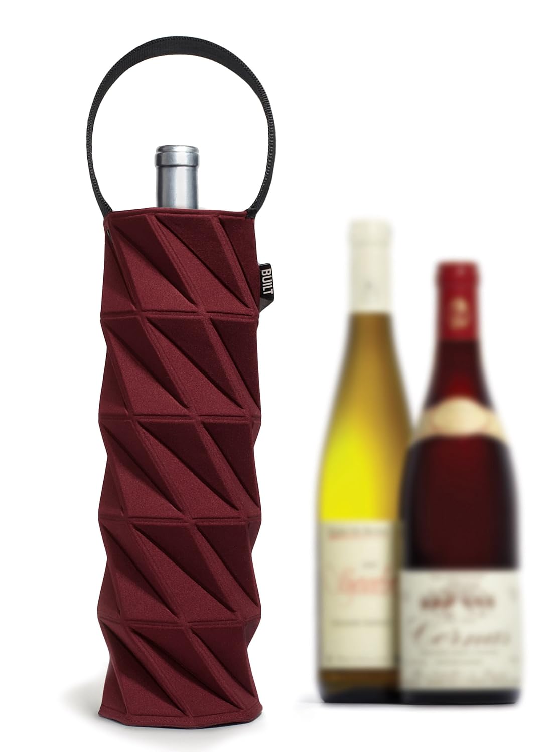 BUILT NY Origami Neoprene Wine/Water Bottle Tote, Bordeaux is best for youColor:Bordeaux This stunning wine carrier offers top-shelf protection for your vino and makes the perfect gift. Its unique folds aren't just visually-appealing-they actually help safeguard your bottle from bumps in the road. This wine carrier also compresses flat and secures with handle for compact storage. Each Origami Wine Tote comes with a to/from tag so it needs no wrapping to make a great presentation. From every angle, this wine tote is the chicest gift option around. Hand wash, drip dry.
