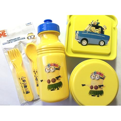 Despicable Me "Minions Mayhem" Childrens Resuable 7pc Lunch Set! Includes Pull Top Water Bottle, Sandwich Box, Snack Container & Flatware! is best for youCommitment to child safety BPA Free Top rack dishwasher safe