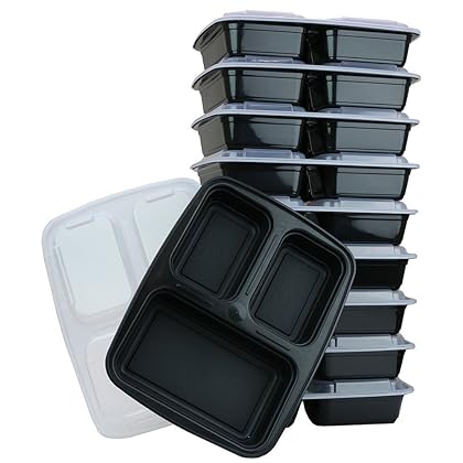 ChefLand 3-Compartment Microwave Safe Food Container with Lid, Divided Plate, Bento Box and Lunch Tray with Cover, Black, 12-Pack best Food Storage