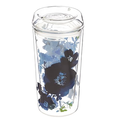 Cypress Home Bella Blue Double Wall Glass Travel Coffee Cup with Lid is best for youColor:Bella Blue This striking, blown glass cup is double-walled, lightweight and perfect for any beverage. Using a multiple-firing process, the two layers of glass are fused together with both an inside and outside decal, creating a stunning, 3D effect. The multiple layers of lightweight, yet sturdy, boriscillate glass insulates the cup and retains the heat of your drink, keeping it fresher longer. This cup is also great for cold drinks, eliminating any condensation. It holds 12 ounces of liquid and is both dishwasher and microwave safe. This travel coffee cup also features a solid glass lid with a sealing rubber ring and hole for sipping. This cup measures approximately 3.19 x 6.69 x 3.19 inches.