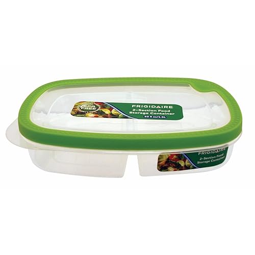 Frigidaire 2 Compartment Bento Lunch Box Container. is best for youStyle Name:50 Oz 2 Section The Frigidaire Grab n' Go allows you to carry three different food items separately in one container. The Grab n' Gos are great for taking lunch to work or school, for kids snacks and for organizing things like screws, paper clips and other small items that you don't want to get all over the place. With the new rubberized edges, Grab n' Go lids closes securely letting you know the contents are secured. The lids have a rubberized surface for easy stacking. Safe to use in the microwave, freezer and dishwasher, the Frigidaire Grab n' Go design allows you to worry about one less thing on a busy morning. If you close your container, you know it's secure Safe to use in microwave, freezer, and dishwasher Grab n' Go lids close securely letting you know the contents are secured Measures 10.6' x 6.5' x 2.4'