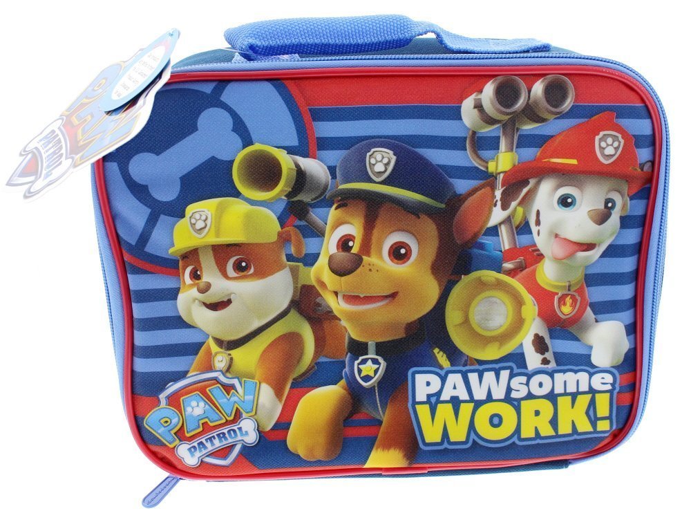 Paw Patrol Chase Rubble and Marshall PAWsome Work! Lunch Box - 10" x 8" x 4" is best for youPaw Patrol PAWsome Work! Lunch Box is fully insulated with top handle and zipper enclosure to keep all your lunch foods protected and temperature controlled. This officially licensed lunch box features Chase Rubble and Marshall decorated on the front cover. Perfect for children to take to school, field trips, vacations and more. The spacious interior keeps all your food secure. Great for storing sandwiches, snacks, drinks and more! Dimensions: 10'L x 8'W x 4'H