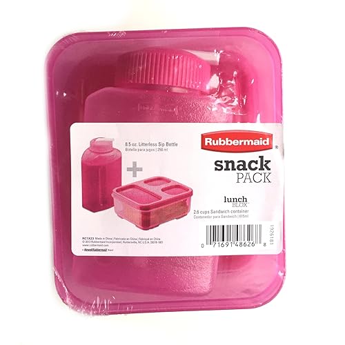 Pink Rubbermaid Snack Pack Lunch Blox Lunchbox Sandwich Container and Sip Bottle is best for youColor:Pink Pink Rubbermaid Lunch Blox lunch containers. Includes a 2.6 cup volume sandwich container and an 8.5 ounce literless sip bottle drink container.
