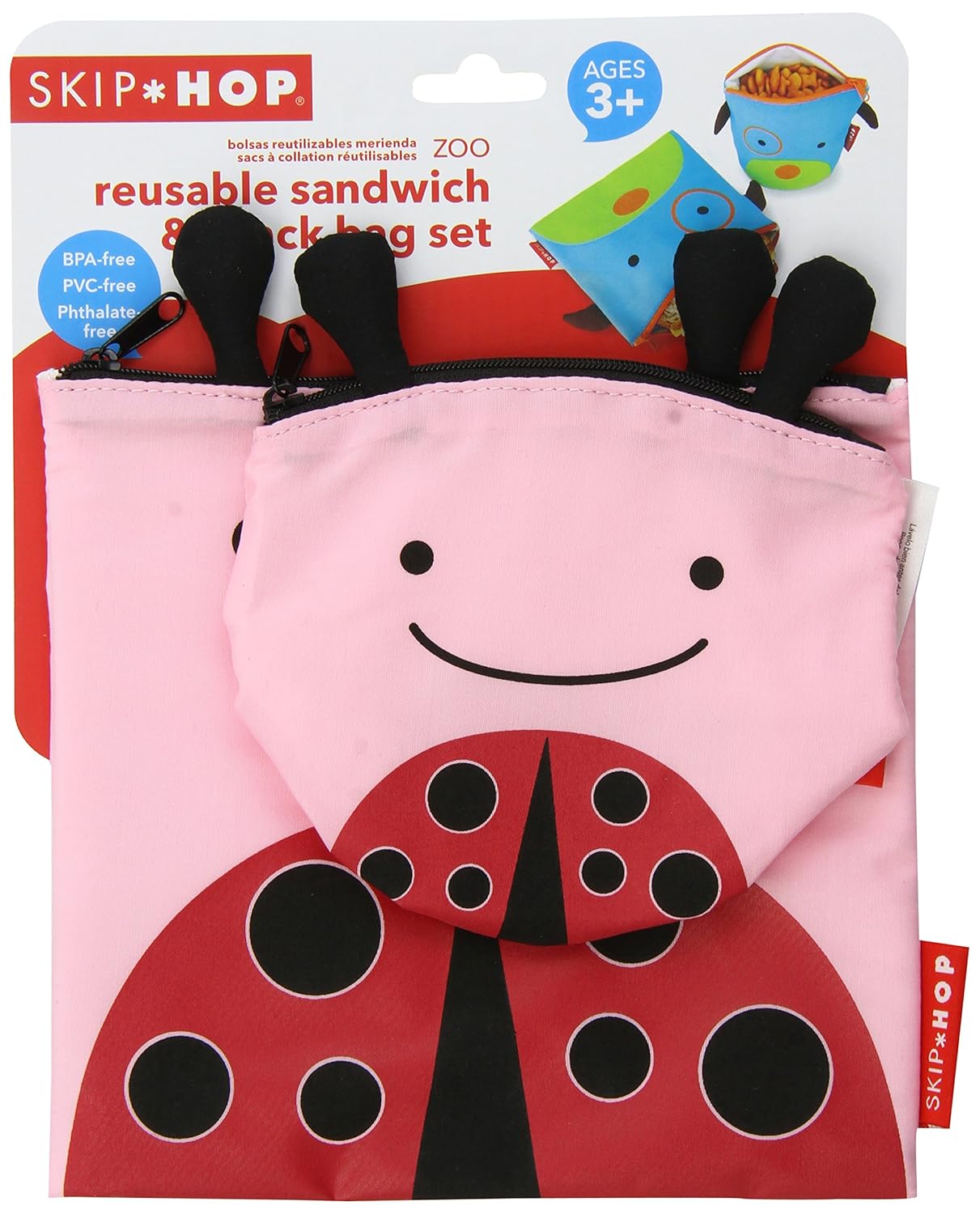 Skip Hop Baby Zoo Little Kid and Toddler 2-Piece Reusable Sandwich and Snack Bag Mealtime Set, Multi Livie Ladybug is best for youSnacks on the move! Our Zoo Reusable Sandwich & Snack Bag Set is made for little kids learning to eat independently, whether at home or on-the-go. The sandwich pouch is ideal for your kiddo's favorite lunch, without the waste of traditional plastic bags. The snack pouch includes a side handle designed just for little hands, perfect for your toddler to tote to the park, preschool, playground and even on the plane!