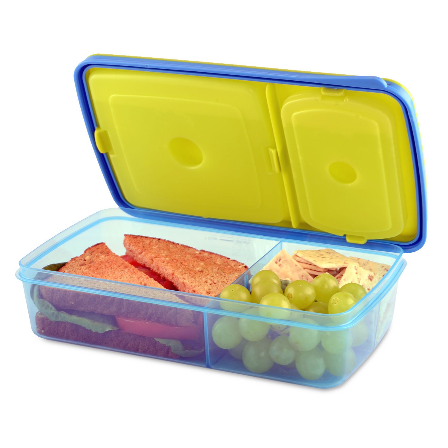 Fit & Fresh Kids' Reusable Divided Meal Carrier with Removable Ice Packs, Bento Box Lunch Container with 3 Food Storage Compartments, BPA-Free, Microwave/Dishwasher Safe is best for youColor:Assorted The whole lunch fits safely into this container, with dividers to keep your child's sandwich and two snacks separately. It will all stay chilled with the two ice packs that can be snapped into the lid. The container is BPA free and the ice pack is non-toxic. The meal carrier features a newly designed soft TPE lip that makes the container easier to open and close for your child! No more squished lunches!