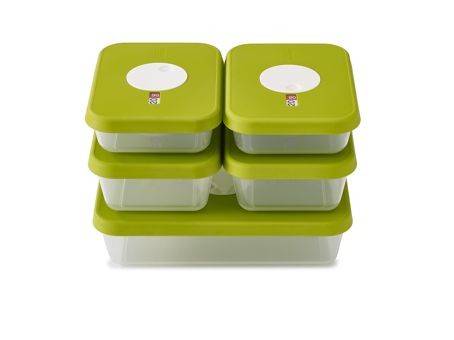 Joseph Joseph Dial Storage 5 Piece Rectangular Container Set, Green is best for youIn the us and UK, the average household throws away anywhere between 25-30% of the food and drink it purchases, mainly due to food spoilage. Keeping track of 'best before' and 'use by' dates is a tricky task and if there is any doubt about a food's condition, it is usually thrown out. New dial storage, however, offers the perfect solution. Each container in the range comes with a clever contra-rotating dial in the lid, which allows you to clearly date the contents - either with a 'use by' or 'when stored' date. Simply turn the dial clockwise to set the month and counter-clockwise to set the day, with the date being visible in the clear window. Available in a range of shapes and sizes, these BPA-free containers are perfect for use in the fridge or freezer. Date it. Don't waste it. Bases: dishwasher safe (top rack), freezer and microwave safe. Lids: hand washing recommended, top-rack dishwasher safe up to 122 degree, freezer safe, not microwave safe. The food we waste - wrap (2008); global food losses and food waste - FAO (2011); natural resources defense council (2012).