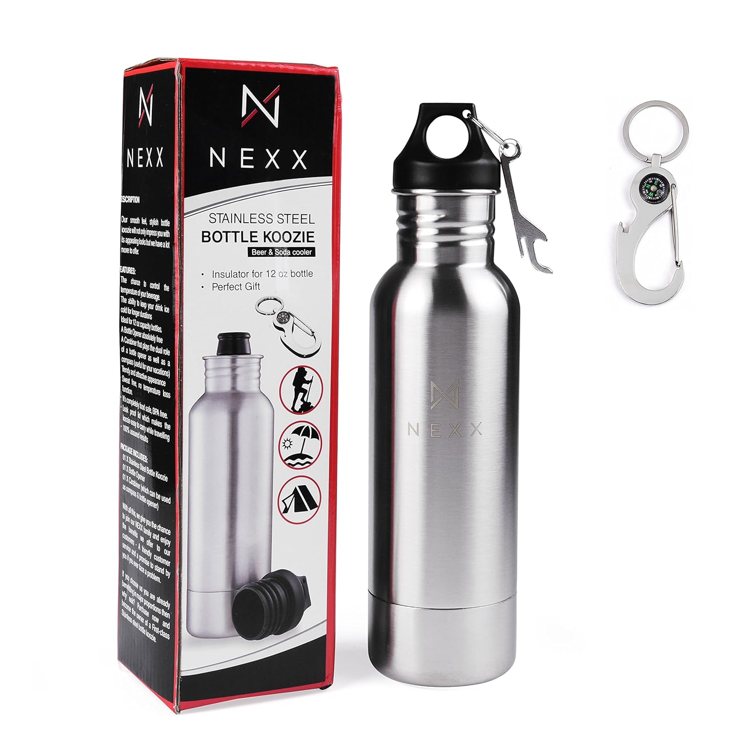 Why Use NEXX Stainless Steel Bottle Koozie • Beer & Soda Cooler • Insulator for 12 oz bottle • FREE Carabiner with Bottle Opener & Compass • Perfect Gift • ?