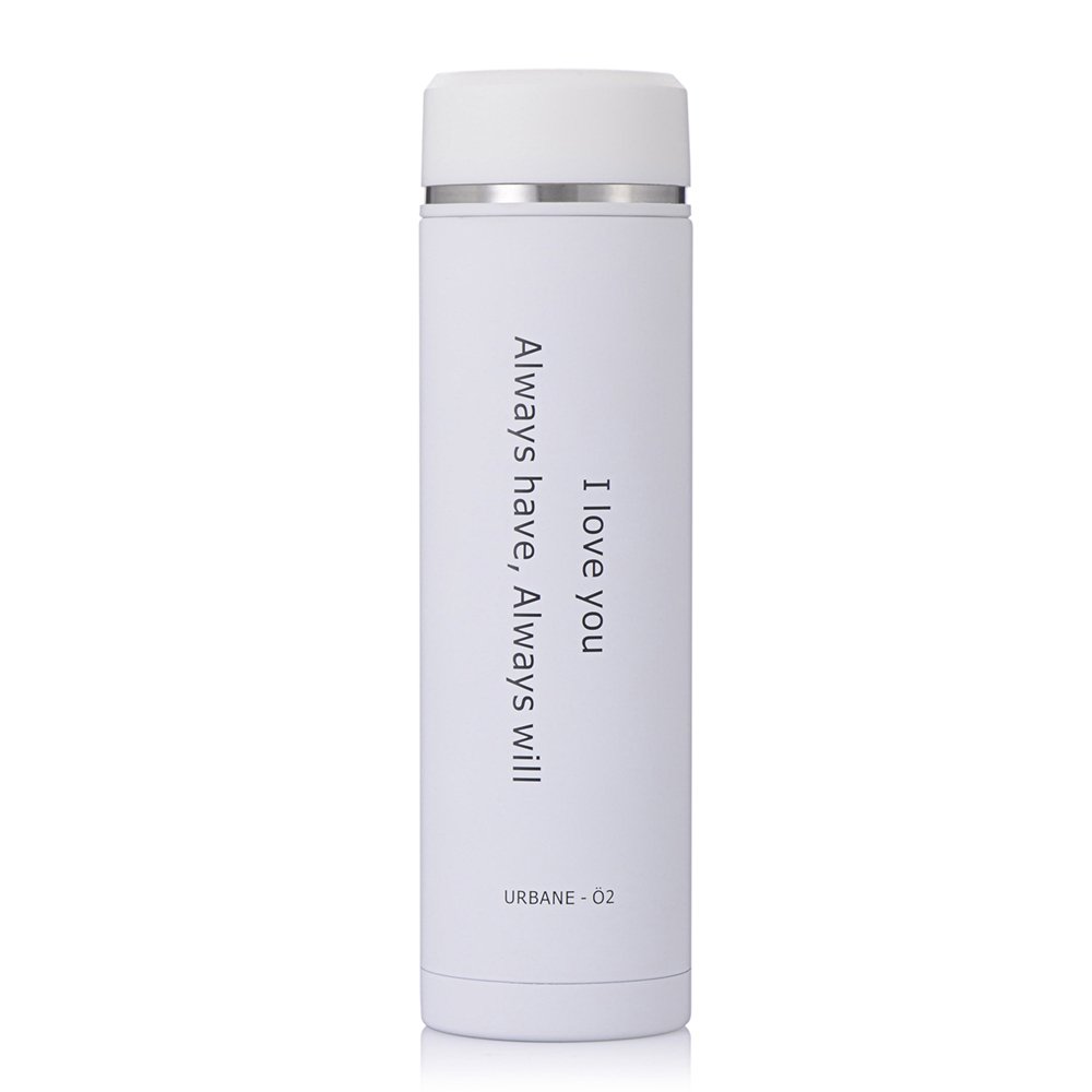 URBANE O2 Insulated Water Bottle,Leakproof 18/8 Stainless Steel Insulated Mug Keep Coffee Hot or Cold for hours,17 Ounce (White) is best for youColor:White URBANE - O2 mug is designed for love in life. This insulated mug enables you to get through a day in the office, intense workout or afternoon tea with free and easy. WHY URBANE - O2 URBANE - O2 Stainless Steel 17oz. Thermos Water Bottle has a vacuum insulation that keeps beverages hot or cold for hours. Durable and sanitary 18/8 stainless steel, BPA and phthalate free making a healthy choice when you drink from a URBANE - O2. Perfect BPA-free leak-proof lid which resists staining and provides durability prevent the lid from leaking or sweating. And because of the double wall insulation, the stainless steel body stays cool to the touch with hot beverages and condensation-free with cold beverages. Features and Benefits Constructed with double wall stainless steel, this 17 ounce tumbler is sturdy, yet its sleek design is both eye-catching and functional. For tea drinkers, a built-in tea hook is just the ticket to brew tea on the go. The tea hook can also accommodate most loose leaf infusers. Quality guarantee The cup body is made of 18/8 stainless metal, and cover made of BPA-free food grade PP, sealing ring is made of the food grade silica gel, safety and health. With the electrolysis grinding technology, makes the mug rustproof,solid and durable.