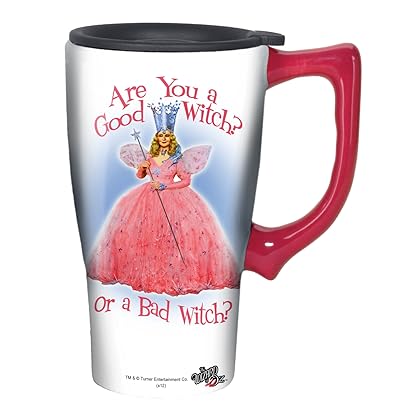 Wizard Of Oz Good Witch Travel Mug, Pink is best for youThis Ceramic Travel Mug is perfect for anyone on the go! With a locking lid and a skid plated bottom this mug is the perfect travel companion. The double wall insulation keeps drinks hot or cold and it is both microwave and dishwasher safe.