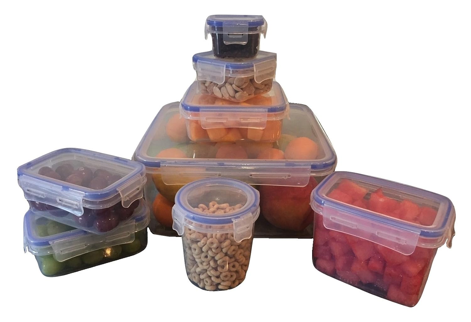 Lock & Stock Food Storage Container Set, 8 Container Set (2 gallon) is best for youSize:8 Container Set (2 gal) Lock & Stock lids lock in freshness and are easy to open & close. 4 locking tabs create an extra secure lid seal that creates a watertight seal and prevents spills. Containers stack smartly and fit inside the larger container to efficiently store and save space. Microwave, dishwasher, and freezer safe.