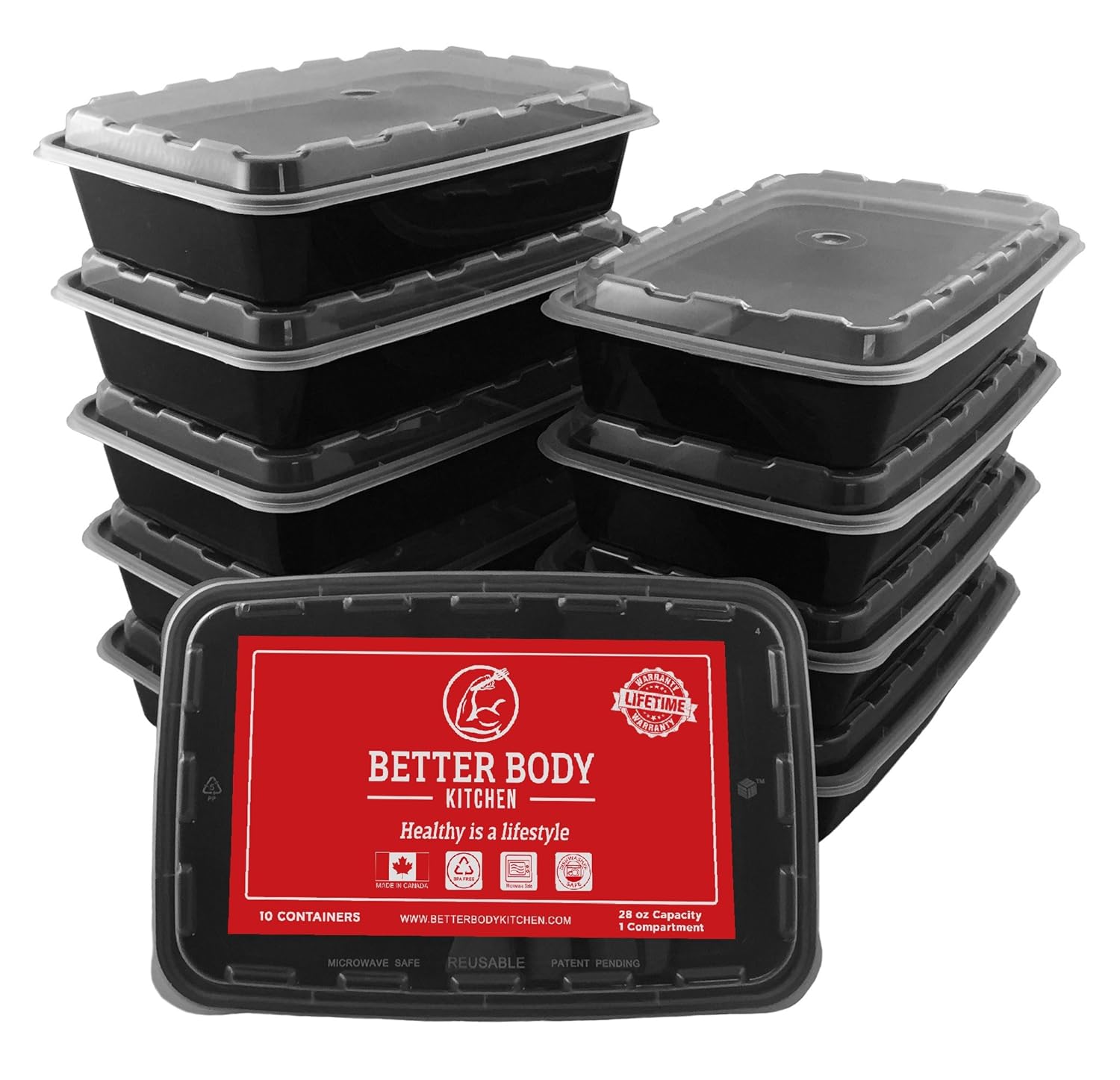 Meal Prep Food Containers by Better Body Kitchen ( Set of 10 ) – Single Compartment and 28 oz Capacity for a Bigger Better Meal is best for youEat Your Way to Better Health!Are you working out hard at the gym and seeing little to no results?Better Body Kitchen knows something you don't know.Abs are made in the kitchen and not in the gym!To really get to those weight loss goals you have, you need to eat properly. There is no ifs, ands or buts. It’s very simple. You need to eat the right foods and proper portions. With the meal prep containers from Better Body Kitchen, getting your health back on track is easier than ever!We’ve crafted a BPA Free container made right here in North America, so you know you are getting a premium product with high standards. We wanted to help make eating healthy simple. Bring us anywhere with you. Our containers are microwave safe which makes it great to take to work or on the go for anyone. And we’re dishwasher safe, so clean up is a cinch!Why Choose Better Body Kitchen?-BPA Free Containers-Made In Canada-Single Compartment -Reusable with a Tight Seal -Microwave and Freezer SafeIf you’re ready to start controlling your health and make eating decisions easier then let Better Body Kitchen be there for you. With us by your side, you won’t have to think about grabbing that fast food and put more money back into your pocket! Get lean and save.Try Today Risk Free with Our Money Back Satisfaction Guarantee!*Supply is limited. Order today to ensure availability.Order Your Meal Prep Containers Now and Feel Better than Ever!