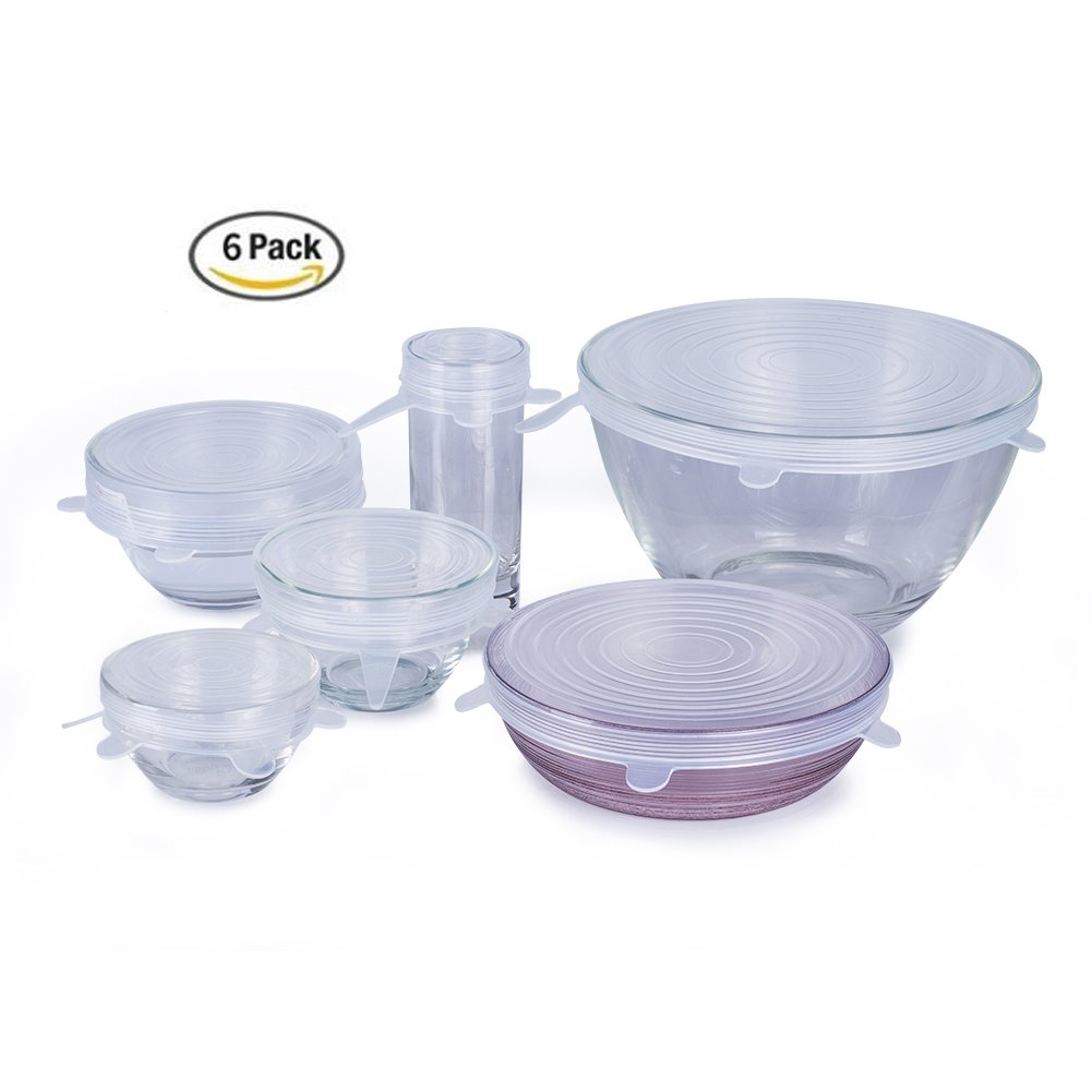 MOWO Stretchable Silicone Lids,Versatile Kitchen Gadget,Microwave Plate Cover Silicone Storage Food,Silicone Stretch Lids Storage Plate Storage Gadgets for Woman,BPA-Free,Food-Grade Airtight Lids(6pc) is best for youMulti 6 sizes in one package, kitchen gadgets Super Stretch Silicone Lids will simplify your life. How many times do you have to put the leftover dinner or salads in other containers to store it in the refrigerator? Not anymore! Stretch your lids over your bowl and stack it in the fridge. These lids form an airtight seal resulting in your food staying fresher for longer. Material: Made of safe, pure and premium BPA-Free food-grade silicone. The 6 sizes: 2.7 inch--Fits small yogurts, fruit cups, 1/2 onion or apple, can of soup, cat or dog food, unfinished glass of wine or milk. 3.6 inch--Fit large yogurts, Sour Cream, 1/2 grapefruit, coffee mug, small bowls, beer mug.4.5 inch--Fits 1/2 a cantaloupe, regular bowls, small tupper ware dishes, bento boxes.5.5 inch--Fits 1/2 a small watermelon, mixing bowls, soup bowls.6.4 inch--Fits extra large bowls, 1/2 of a giant watermelon, mixing bowls.8.3 inch--Fits large salad bowl, Cuisinart mixing bowl.Stretch ability: Stretch up to 30% bigger, versatile stretchy lids helps you to eliminate the hassle of lost lids.Fit all shape: fit any shape of cups, dishes,bowls,plates or containers (oval, rectangle, round, square), create a strong hold to prevent spills. Tips:Pick up the size little smaller than the item you want to cover, and make sure the the inside ridge is dry so the ridges will stick.