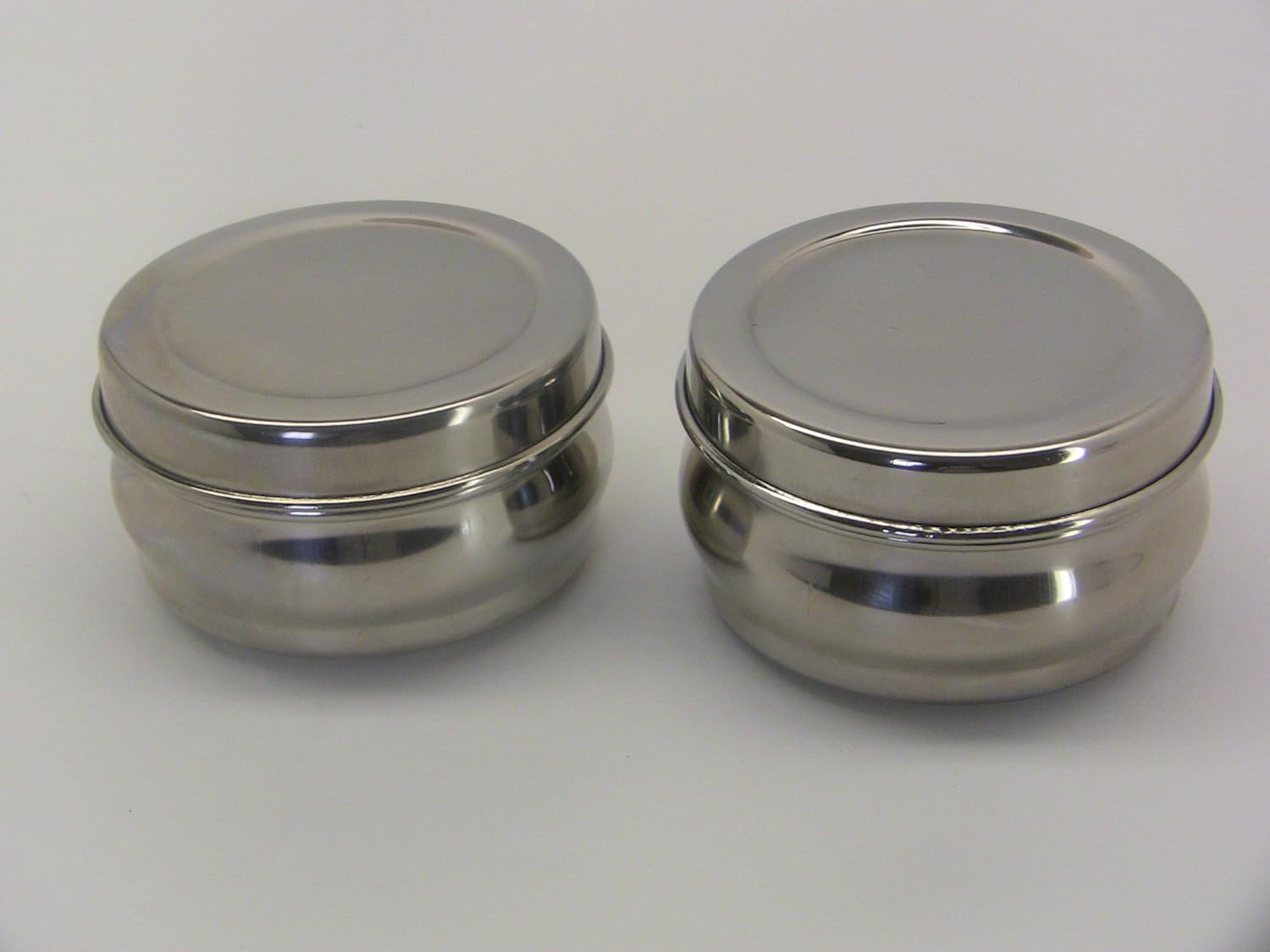 Qualways Leak-proof 8 OZ Stainless Steel Lunch Box Containers Set of 2, Food Storage Snack Containers 8 OZ Set Of 2 is best for youThese durable and stylish stainless steel food containers(set of 2) are made of high quality stainless steel. Use it for your children's meals/snacks, or for your own. It's a great and healthy alternative to plastic and other disposable boxes. Each stainless steel box measures 3.25(Diameter)X 1.75 (Height) inches and holds up to 8 OZ of Water/Liquid or 8 OZ of sugar/flour. Keep them on your table inside for durability during your child's dinner, or bring them with you for outside eating occasions like parties or camping.