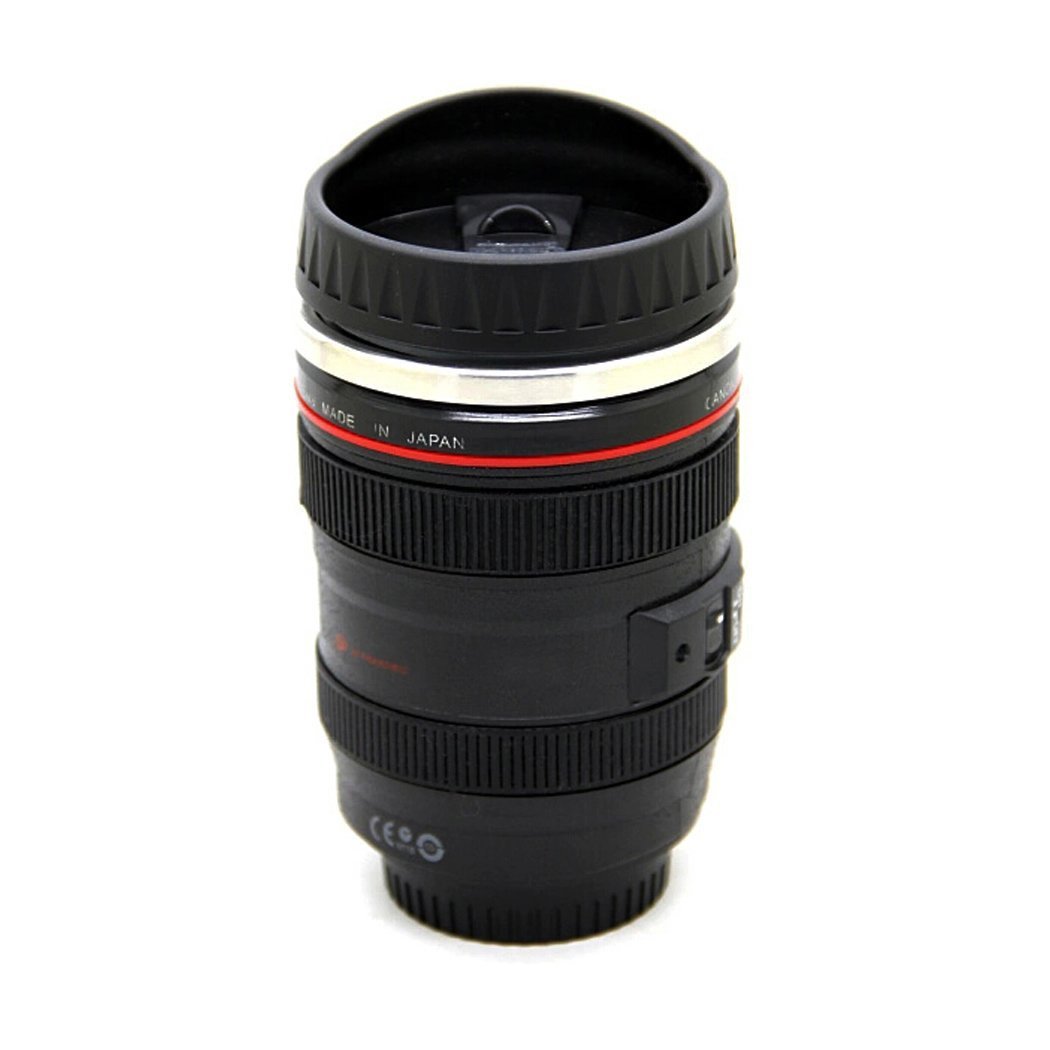 Thermo Lens Mug Dslr Camera Lens Travel Coffee Mug and Refreshments / Cup / Stainless Steel Insulated, Stainless Steel Interior is best for youDescription Features: This Lens Coffee Mug works just like a real travel cup because you can drink from the lid. It's better than some lens mugs that have closed off caps and can slosh out when moving.